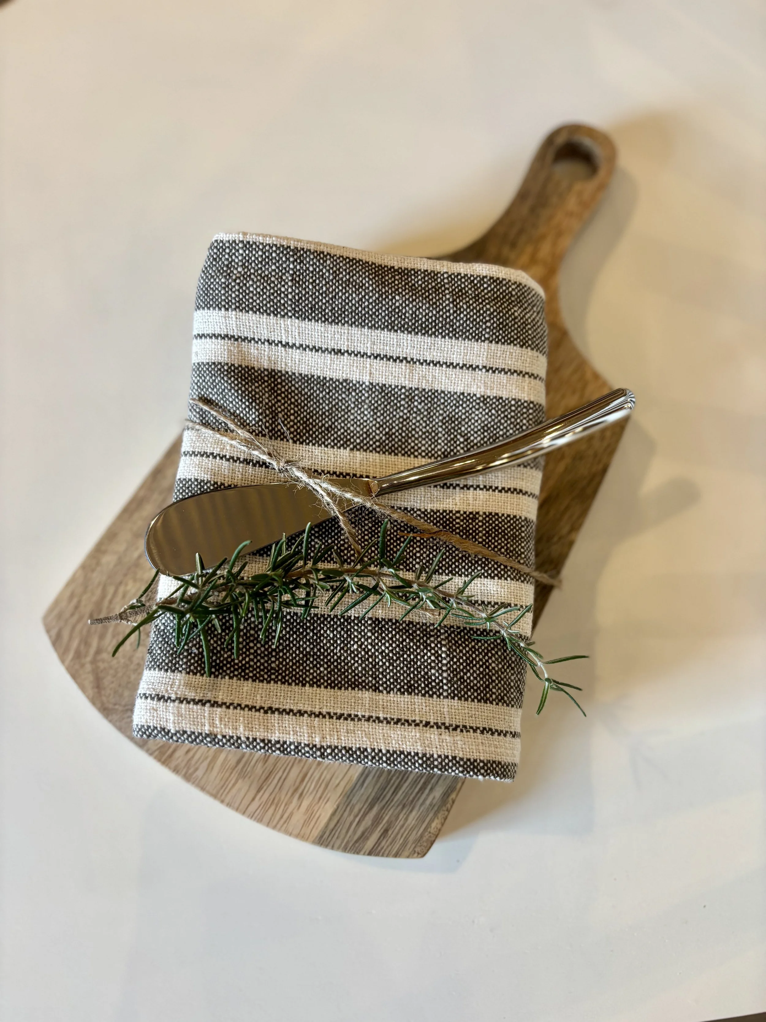 Perfect on its own or as a base gift. We incorporate textiles and kitchenware into our wedding bundles.